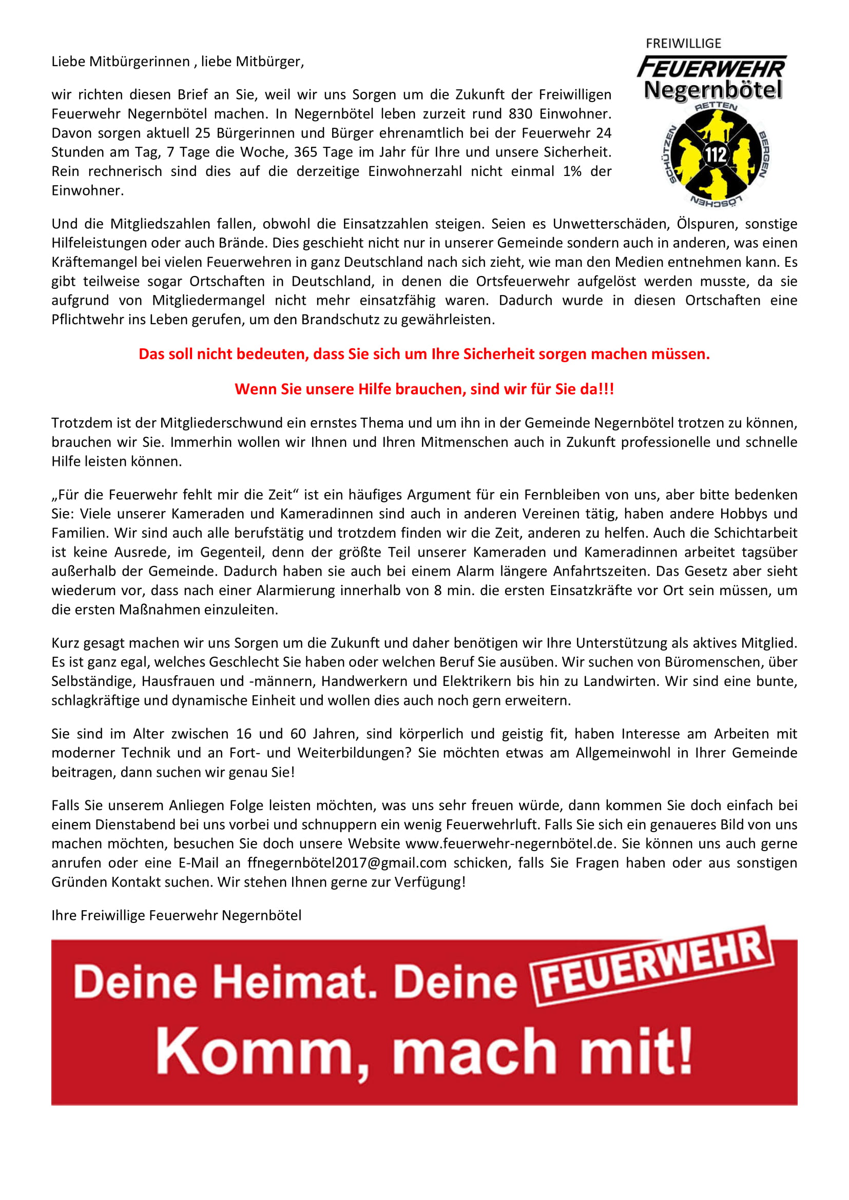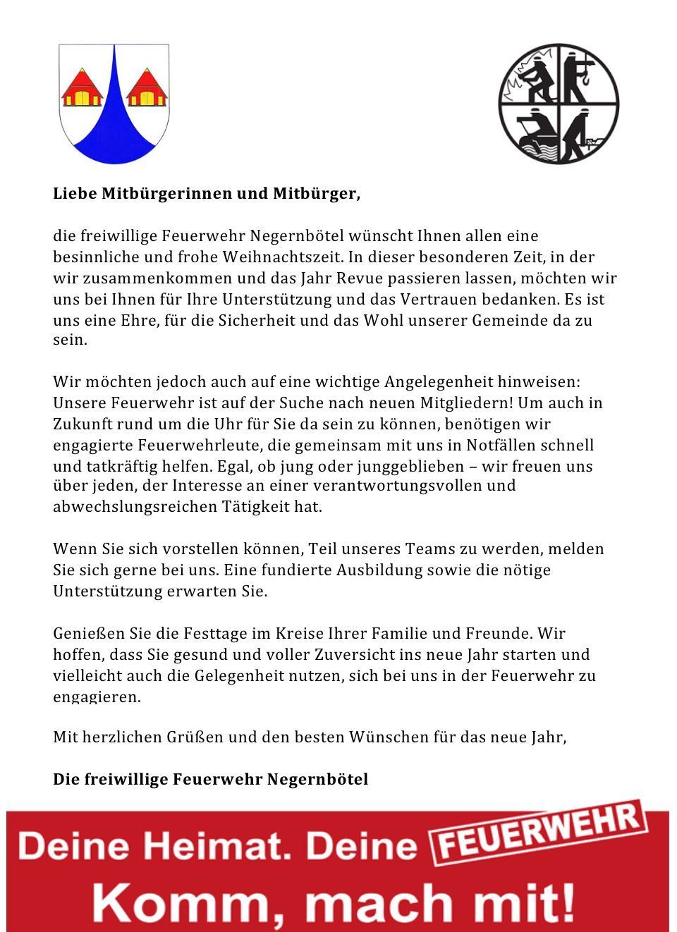Liebe Besucher und Besucherinnen, hier stellt sich die Freiwillige Feuerwehr Negernbötel vor!